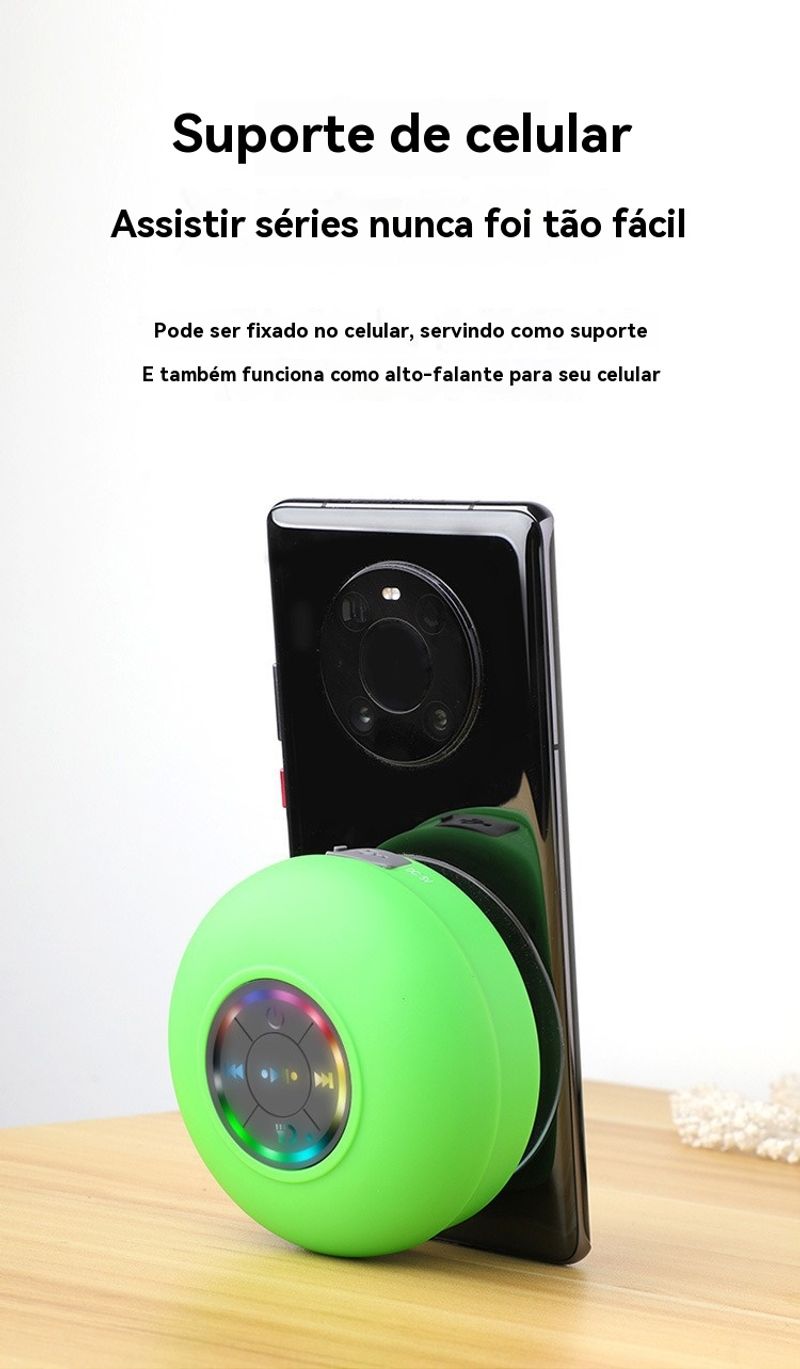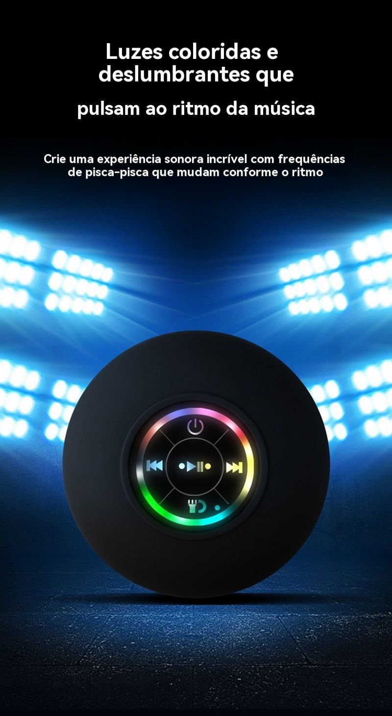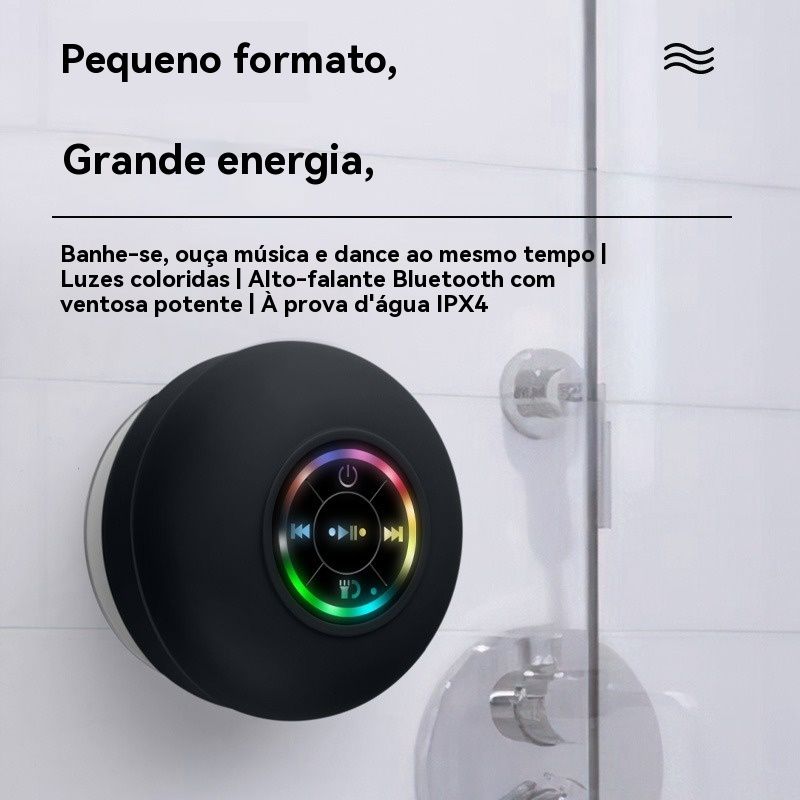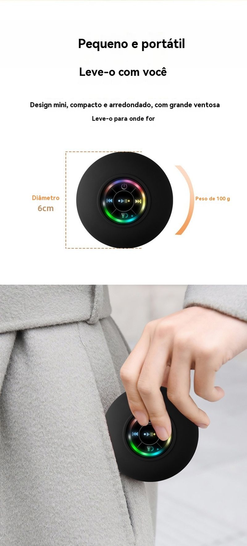 Caixa de som Bluetooth à prova d'água para banheiro, modelo com ventosa grande e luz LED