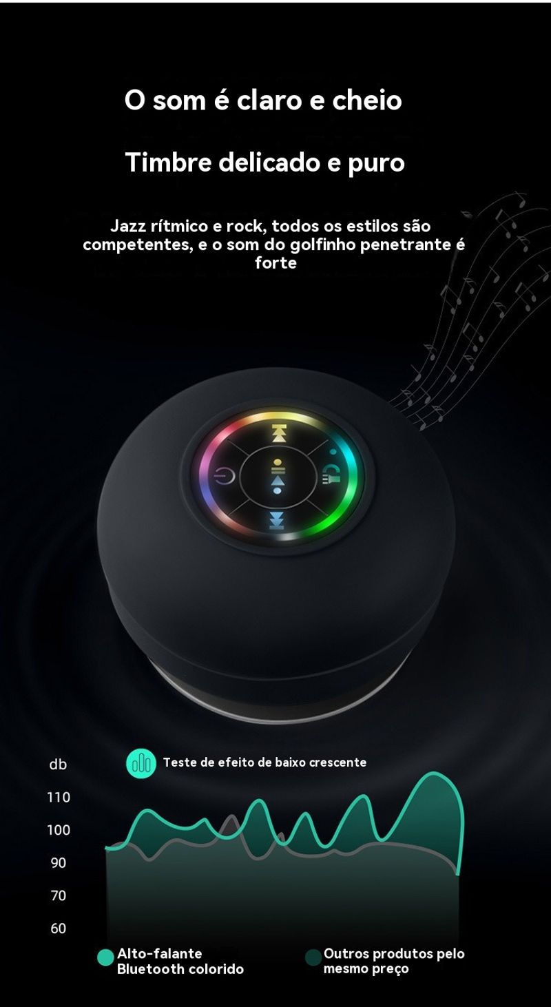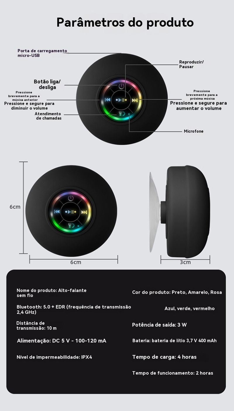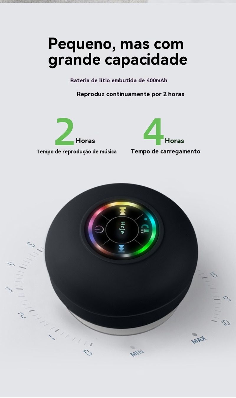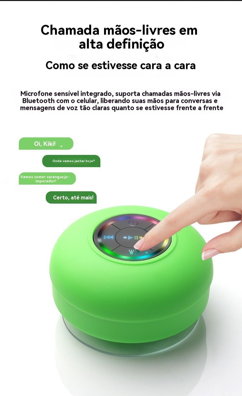 Caixa de som Bluetooth à prova d'água para banheiro, modelo com ventosa grande e luz LED