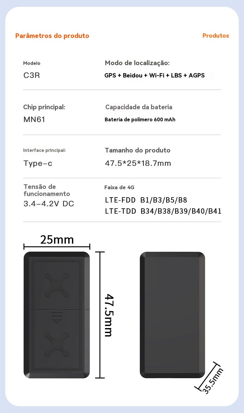 Rastreador veicular GPS Beidou inteligente sem fio